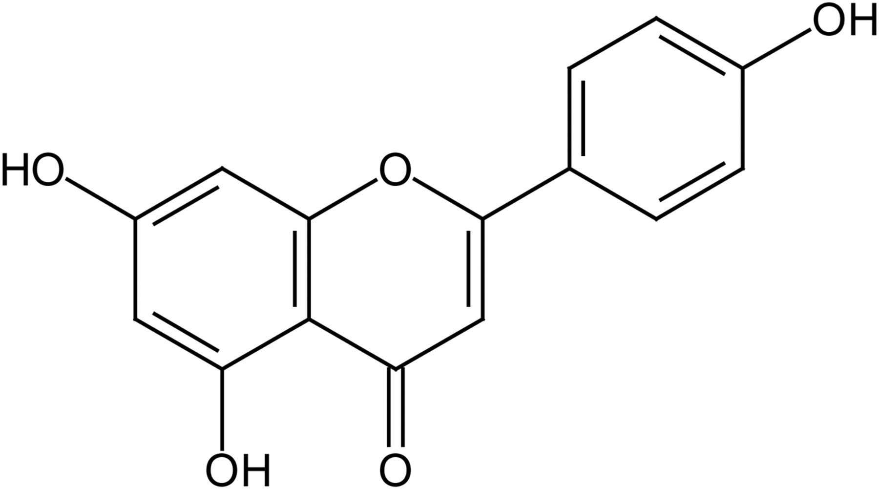 Apigenin is a common dietary flavonoid that is abundantly present in many fruits, vegetables and Chinese medicinal herbs and serves multiple physiological functions, such as strong anti-inflammatory, antioxidant, antibacterial and antiviral activities and blood pressure reduction. Therefore, apigenin has been used as a traditional medicine for centuries. Recently, apigenin has been widely investigated for its anti-cancer activities and low toxicity. Apigenin was reported to suppress various human cancers in vitro and in vivo by multiple biological effects, such as triggering cell apoptosis and autophagy, inducing cell cycle arrest, suppressing cell migration and invasion, and stimulating an immune response.